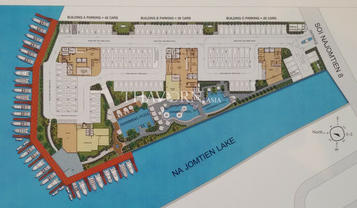 Details and location of the Whale Marina Condo project (Whale Marina Condo) is a condominium with 8 floors, 3 buildings, a total of 364 residential units, project area approximately 4 rai 88 square wa, completed and ready to move in. Residence 2018, located at Soi Na Jomtien 8, Na Jomtien Subdistrict, Sattahip District, Chonburi Province.